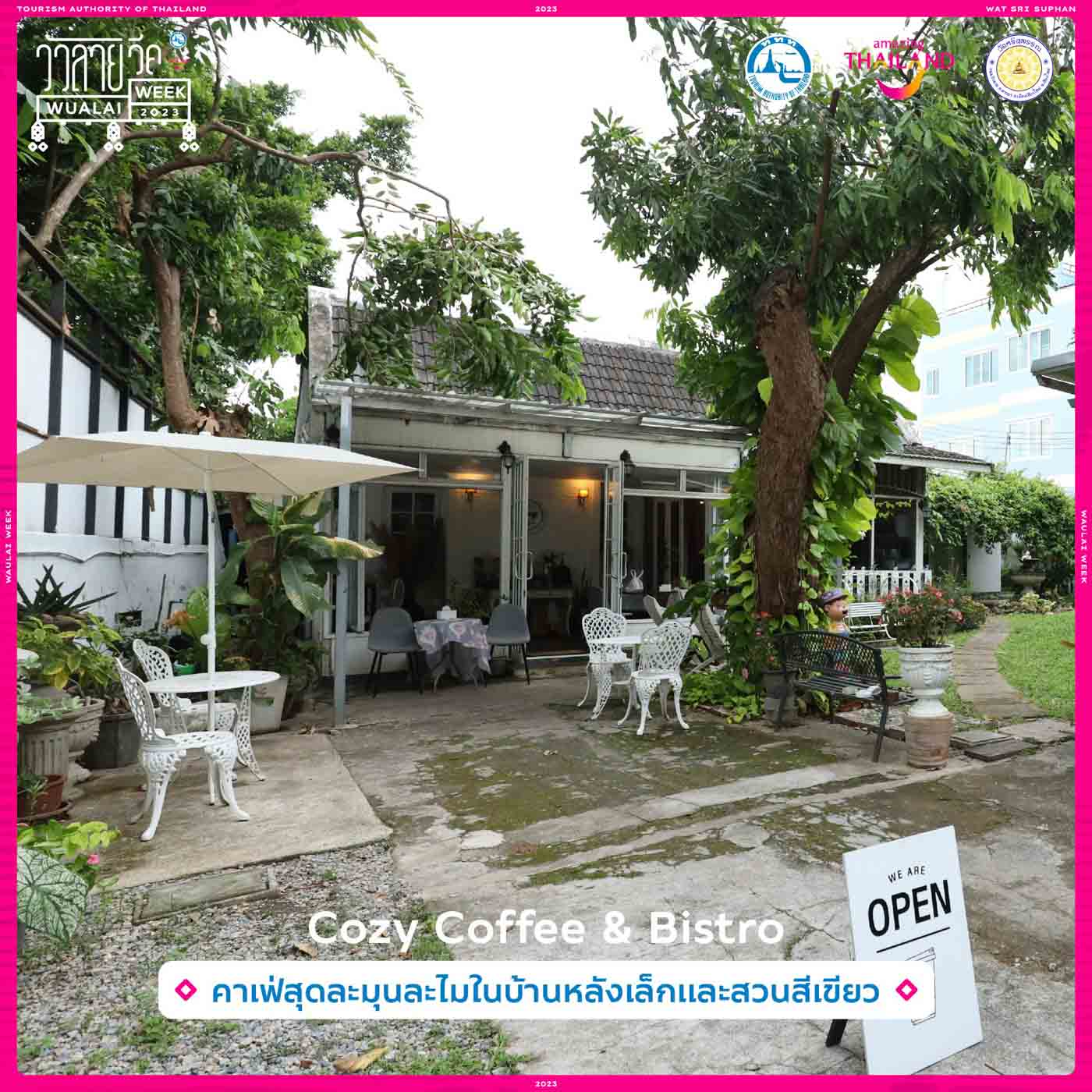 คาเฟ่ในบรรยากาศโคซี่สมชื่อร้าน Cozy Coffee & Bistro ตั้งอยู่ภายใน Tiny House หลังสีขาว ผสมผสานกลิ่นอายตะวันตกและล้านนา โดยผู้เป็นเจ้าของได้มีการรีโนเวทจากบ้านที่ผูกพันธ์ตั้งแต่สมัยเด็ก ให้เป็นร้านอาหารที่ให้การต้อนรับที่แสนอบอุ่นและเป็นกันเอง